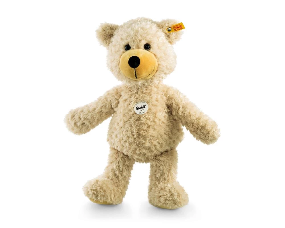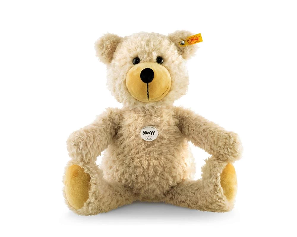 Steiff Fans werden Charly sofort erkennen. Der freundliche Bär gehört zu den beliebtesten Steiff Tieren im Sortiment. So ist es auch nicht verwunderlich, dass es Charly nun auch mit einer Größe von 40 cm gibt. Der kuschelige Spielkamerad ist ein treuer Freund zum Schmusen und Kuscheln. Außerdem ein unverzichtbarer Begleiter in der Kindheit und darüber hinaus. Charly ist aus kuschelweichem Plüsch und freut sich auf viele gemeinsame Abenteuer.