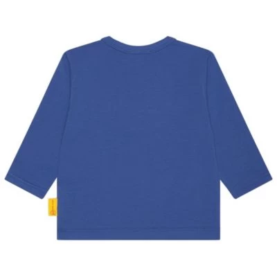 T-Shirt mit langen Ärmeln für Jungen und Mädchen von der Marke Steiff. Einfarbig mit Druckknöpfen am Rundhalsausschnitt und flauschigem Teddybär-Motiv. Weicher, elastischer Baumwoll-Jersey.