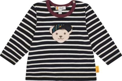 Dieses Langarmshirt begeistert kleine Abenteurer mit einem Teddybär als Frontmotiv. Gemütlich weicher Jersey bietet ein herrliches Tragegefühl. Eine lässige Passform und flexible Bündchen schenken aktiven Jungen viel Bewegungsfreiheit beim Spielen und Herumtollen. Navyblau – Offwhite gestreift mit rotem Halsabschluss verleiht einen klassischen maritimen Look. Unterwegs wird Ihr Kleiner von einem flauschigen Steiff Teddybärmotiv mit Baseball Kappe Auf ins Vergnügen!