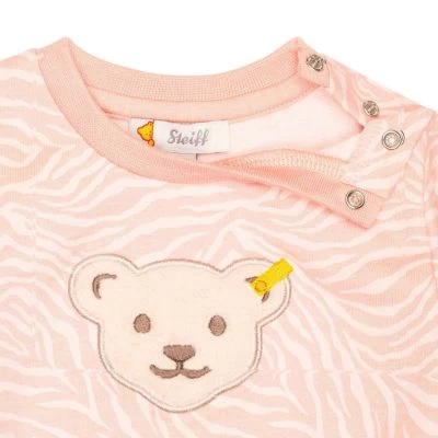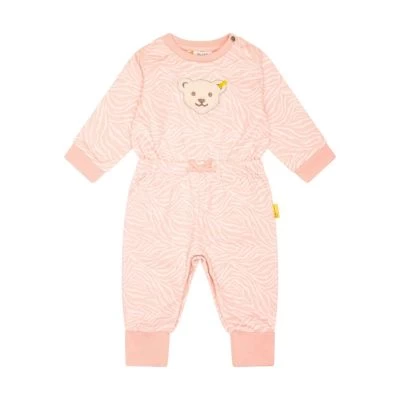 Rundum schmuseweich verpackt: Über den weichen Baumwoll-Sweatoverall in schönem Rosa mit dschungelhaften Zebrastreifen-Print freuen sich kleine Mädels jedes Mal von neuem. Er bietet Platz zum Strampeln und Quatsch machen, das große flauschige Teddybärmotiv bildet den fröhlichen Mittelpunkt. Per Gummitunnel passt sich der Overall perfekt an die Taille an, Softbündchen umschließen sanft die Arm- und Fußgelenke. Zwei Schulteröffnungen machen das An- und Ausziehen leicht.
