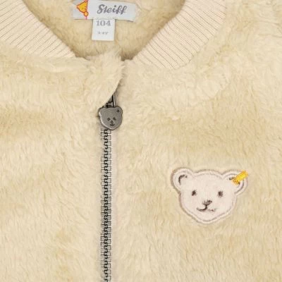 Als Klassiker im College-Look begeistert die gemütliche Jacke durch ein besonders leichtes Tragegefühl. Mit dem flauschigen Plüschstoff geht es gemütlich gewärmt aus dem Haus. Denn in die Jacke kann sich richtig eingekuschelt werden. Die lockere Passform schenkt aktiven Jungen Bewegungsfreiheit. Der Reissverschluss ist mit einem Kinnschutz ausgestattet. Gestreifte Details und bequeme Seitentaschen sind weitere schöne Extras. Ihr Kleiner wird für alle Fälle von einem flauschigen Steiff Teddybärmotiv durch den Tag begleitet. Mit Kuschelfaktor!