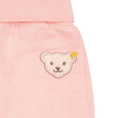 Als unkomplizierter Allrounder ist unsere mit Jersey -Futter ausgestattete Musslin-Hose ein gemütlicher Wärmespender für zu Hause und unterwegs. Herrlich weich und flexibel ist für ein perfektes Tragegefühl gesorgt. Lockere Passform, sanfter Schlupfbund und weiche Abschlüsse machen wirklich jede Aktivität mit. Für alle Fälle wird Ihre Kleine von einem flauschigen Steiff Teddybärmotiv überallhin begleitet. Mit Wohlfühlgarantie!