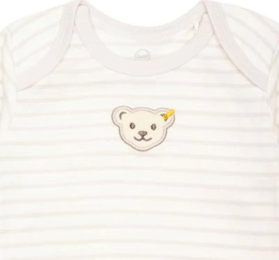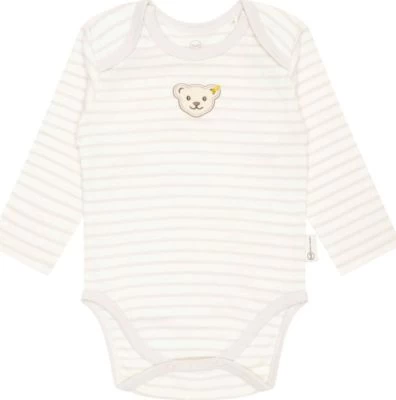 In bequemer Passform und angenehm wärmend ist der langärmlige Body die Grundlage für Kombinationen an kühlen Tagen. Sehr flexibel lässt sich darin auch wunderbar spielen, herumtoben oder gemütlich einschlafen. Schlupfkragen und Druckknöpfchen sind praktische Helfer beim Anziehen. Weicher Jersey verwöhnt zarte Babyhaut mit einem herrlichen Tragegefühl. Hübsches Ecru ist als Klassiker vielseitig kombinierbar. Als süße Applikation auf der Brustmitte begleitet ein Steiff Teddybärmotiv Ihr Kleines durch den Tag. Perfektes Basic!