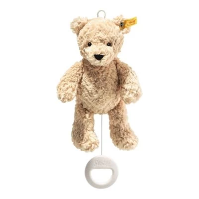 Mit der Melodie von “Guter Mond” wiegt der kuschelige Spieluhr-Teddybär Jimmy von Steiff Dein Baby sanft in den Schlaf. Spieluhr Teddybär Jimmy von Steiff aus der Soft Cuddly Friends Reihe Melodie “Guter Mond” mit herausnehmbarem Spielwerk Größe: 26 cm aus Plüsch ab Geburt geeignet Teddybär Jimmy hat kuschelweiches Fell aus Plüsch und lädt Deinen Nachwuchs zum Fühlen und Streicheln ein. Mit der gut anderthalb Minuten langen Melodie von “Guter Mond” wiegt die 26 Zentimeter große Spieluhr Dein Baby sanft in den Schlaf. Praktisch: Das Musikwerk lässt sich per Reißverschluss aus der Spieluhr entnehmen – so kann Jimmy problemlos bei bis zu 30 Grad in der Waschmaschine gewaschen werden.