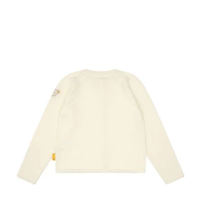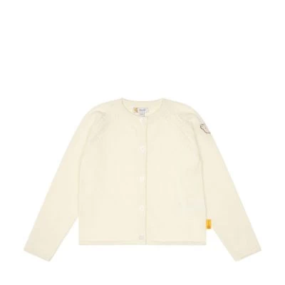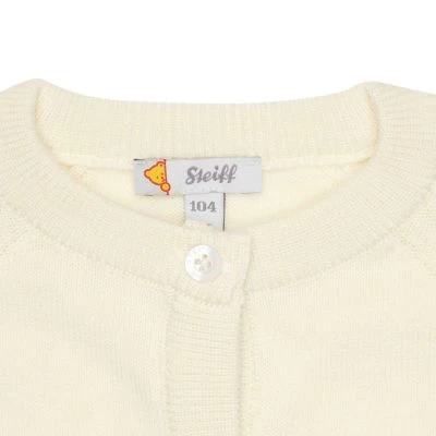 Die flauschige Strickjacke wird an kühleren Tagen zum Lieblingsstück mit Kuschelfaktor. Unkomplizierter Baumwollstrick sorgt für ein herrliches Tragegefühl und wärmt angenehm. Klassische Passform und rollierte Abschlüsse unterstützen neugierige Aktivitäten mit Bewegungsfreiheit. Ton-in-Ton-Knöpfe sind weitere schöne Details. Ein besonderes Strickdesign mit Lochmuster sorgt für süßen Retro-Charme und passt zu Jeanshosen genauso gut wie zu verspielten Kleidern. Für alle Fälle begleitet ein flauschiges Steiff Teddybärmotiv Ihre Kleine zu Ausflügen und Abenteuern. Auf den Punkt!