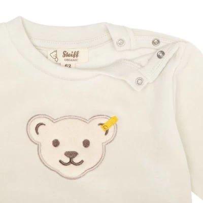 Mit dem Sweatshirt aus samtigem Organic Velour genießen kleine Weltentdeckerinnen die schönsten Unternehmungen. Das weiche Material wärmt mit Kuschelfaktor und garantiert ein herrliches Tragegefühl. Druckknöpfe auf der Schulter Ausschnitt und flexible Bündchen ermöglichen unkompliziertes Hineinschlüpfen und Wohlfühlen. Die lockere Passform unterstützt alle fröhlichen Aktivitäten. Hellgrau passt zu romantischen Kombinationen. Ihr Kleines wird von einem flauschigen Steiff Teddybärmotiv auf der Shirtfront durch den Tag begleitet. Das Sweatshirt ist aus Bio-Baumwolle gefertigt.