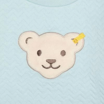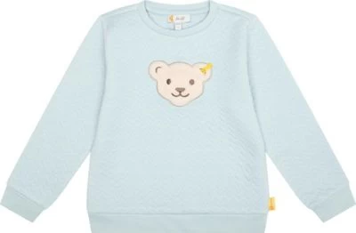 Mit einem sehr edlen Zick Zack-Look erobert dieses Sweatshirt die Herzen kleiner Stilikonen. Elastische Rippbündchen ermöglichen unkompliziertes Anziehen. Einfach schnell obendrüber gezogen oder als Basic für coole Alltags-Looks, die gesteppte Optik auf Hellblau lässt sich nach Lust und Laune als Hingucker kombinieren. Natürlich ist es nicht nur stylisch: wir haben uns bei diesem Artikel für einen weichen und wärmenden Sweat Stoff entschieden, damit Ihr Kind auch an kalten Tagen nicht friert. Für alle Fälle begleitet ein flauschiges Steiff Teddybärmotiv mit Quietsche auf der Shirtmitte Ihre Kleine zu Ausflügen und Abenteuern. Ein Lieblingsstück!