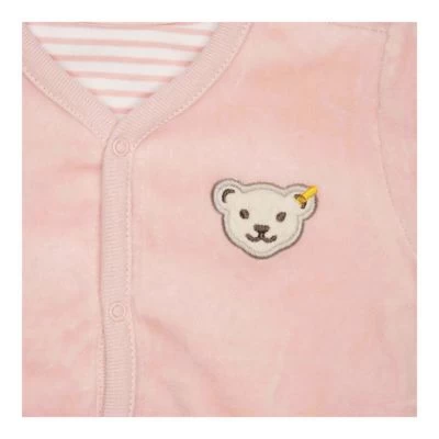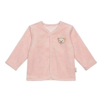 Die Wende-Nickijacke von Steiff bietet gleich zwei zeitlos schöne Designs für noch mehr Kombinierungsmöglichkeiten. Wende-Nickijacke von Steiff Außenseite einfarbig mit Bärenkopf-Applikation auf der Brust, Innenseite geringelt durchgehende Druckknopfleiste auf der Vorderseite Nicki-Qualität Nicki-Qualität mit hohem Baumwoll-Anteil macht die Außenseite der Wendejacke angenehm weich. Eine leichte Beigabe von Elasthan sorgt für ausreichend Bewegungsfreiheit. Die Innenseite ist aus reiner Baumwolle hergestellt und verspricht ebenfalls hohen Tragekomfort. Die durchgehende Druckknopfleiste auf der Vorderseite ermöglicht ein unkompliziertes An- und Ausziehen. Optisch überzeugt die Jacke mit zwei verschiedenen Looks: Die Außenseite ist einfarbig gehalten und wird von einer Bärenkopf-Applikation auf der Brust ergänzt. Wird die Jacke auf links gedreht, kommt die geringelte Innenseite zum Vorschein und bietet einen weiteren, zeitlosen Look. Material Obermaterial 1: 85% Baumwolle, 15% Polyester Obermaterial 2: 95% Baumwolle, 5% Elasthan Besatz : 100% Baumwolle